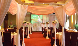 音响、投影、LED背景墙、灯光等设施完善,适合各类婚礼布置。