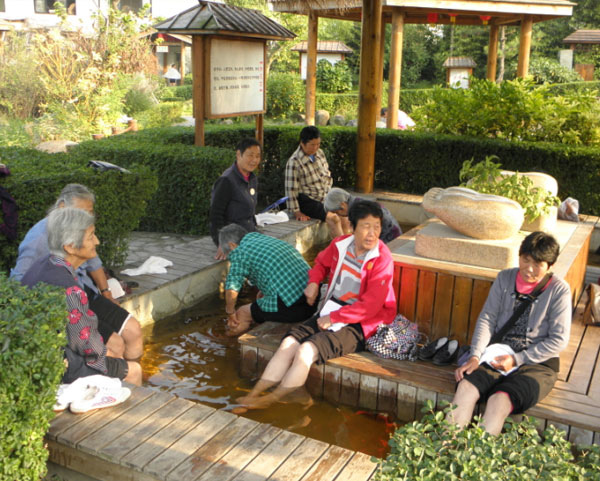 露天温泉区是中国首家道教主题文化温泉区,分“十区38泡”:热身区、VIP SPA区、老子养生文化区、中药泡浴区、游泳区、石泉区、花草池区、美容池区、地热廊区,各种大小功能不一的温泉池区,能坐、能游、能卧,静动结合,设施齐全。