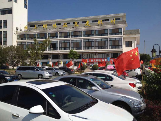红旗招展锣鼓喧天,淮上明珠温泉度假村喜迎国庆,喜气洋洋接四方宾朋!