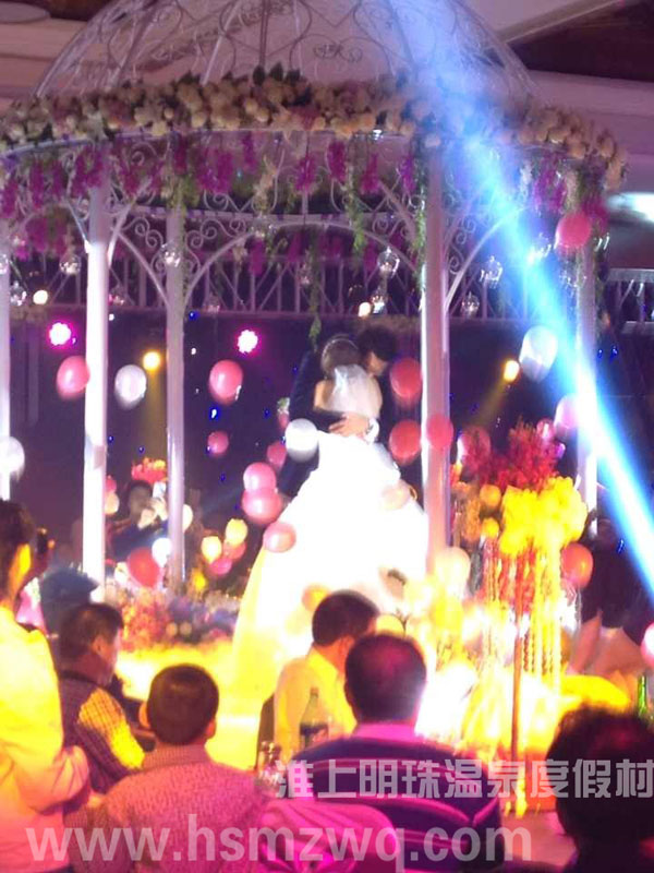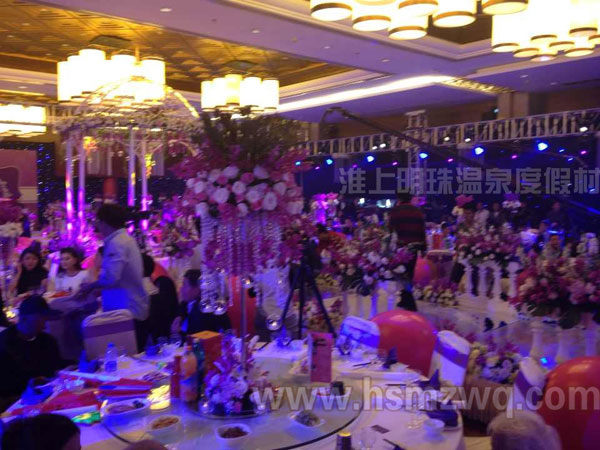 淮上明珠温泉度假村是江苏富有集团全资子公司,今天董事长儿子新婚,这是一场别开生面的婚礼,是一场特色主题婚礼,婚礼开始时播放了由江苏教育电视台录制的微电影:三代人的婚礼,不一样的浪漫!婚庆充满了对往事对怀恋,对未来的创景,对现在美好生活的热爱和珍惜,更有对伟大祖国六十多年风风雨雨逐步富强繁荣昌盛的自豪感,阐述了现代企业应该具有国家、公司、员工共同富有的情怀和远见!婚庆现场掌声一阵阵雷鸣般想起,那一部三代人的纪录片勾起了太多人对过去岁月的怀恋,让我们铭记今天的日子来之不易,祝福我们伟大的祖国更加富强更加繁荣,永远走在世界的前列!!!
