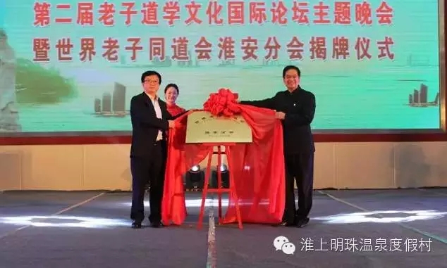 11月7至8日,淮上明珠温泉度假村成功举办了第二届老子道学文化国际论坛暨世界老子同道会淮安分会揭牌仪式。县委书记徐东海致辞。县长殷强和世界老子同道会会长、中国国学院大学常务副校长李德深共同为世界老子同道会淮安分会揭牌。县政协主席陈继信,新加坡烹饪协会主席黄万球,世界老子同道会秘书长李洪,新加坡正气歌国际传播中心主席郝知本,中国老子同道会会长张云程,文化部中国民族文化艺术基金会主任刘文彪,全球华人公益事业联合会主席崔庆华,淮上明珠温泉度假村董事长陈宽有等出席会议。