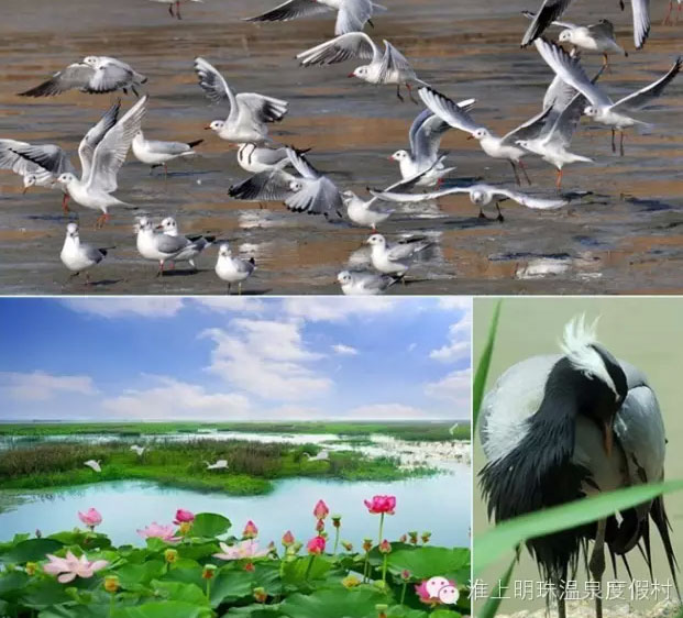 湖区生态游是我们第二条观光线路,乘着游艇,登上滩头,眼前绿色一片。“没想到淮流滩、淮仁滩如今变化这么大,河床纵横,鱼塘密布,杨柳成行。”又是一位朋友感叹到,洪泽湖珍稀鸟类保护区、万亩湿地就在老子山淮仁滩淮流滩.