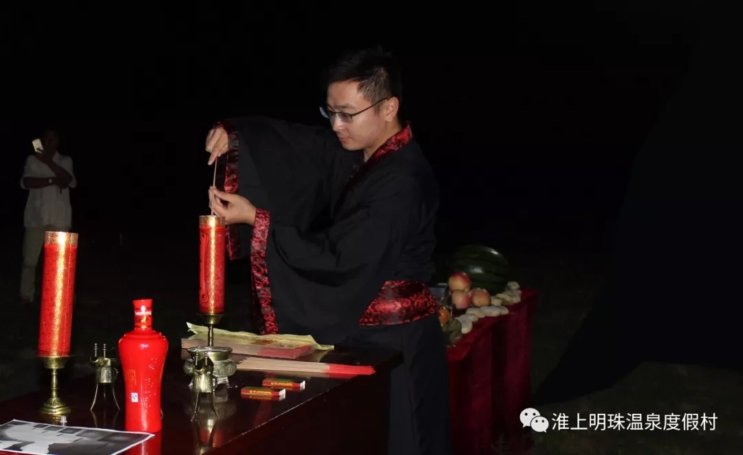 2018,老子山首届中秋佳节祭月传统文化活动在淮上明珠温泉度假村隆重举行!仪式现场庄严肃穆,主祭、从祭、上香、祭酒、祈读祭文、礼成!期间月亮明亮圆润,散发圣洁的光辉接受人间的祭拜,护佑祖国母亲、中华大地、老子山一方水土风调雨顺!再现中华民族传统文化之安邦定国百姓安居乐业的美好愿望!!